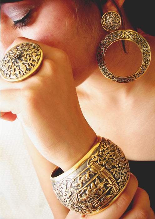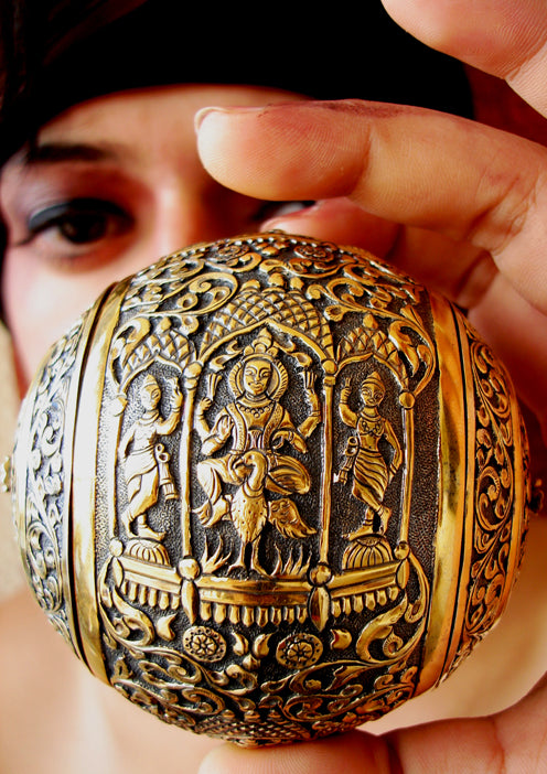 Inspired by the Underlying principle of yoga 'You are all you need, you have all you need', This Jewellery Box was designed and manufactured for Amrapali Jewels, Jaipur, India. The box opens up to give individual jewellery pieces: A pair of earrings, a Brooch, a Ring and a Bangle.