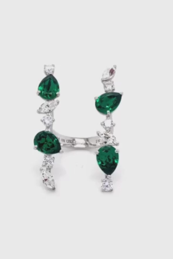 Statement rings add heaps to any outfit! Set with bedazzling faceted forest green and pristine white crystals, Arvana is a truly unique ring to add to your jewelry box. The open shank is a great feature and makes it easy to adjust the ring 1-2 sizes up or down!
